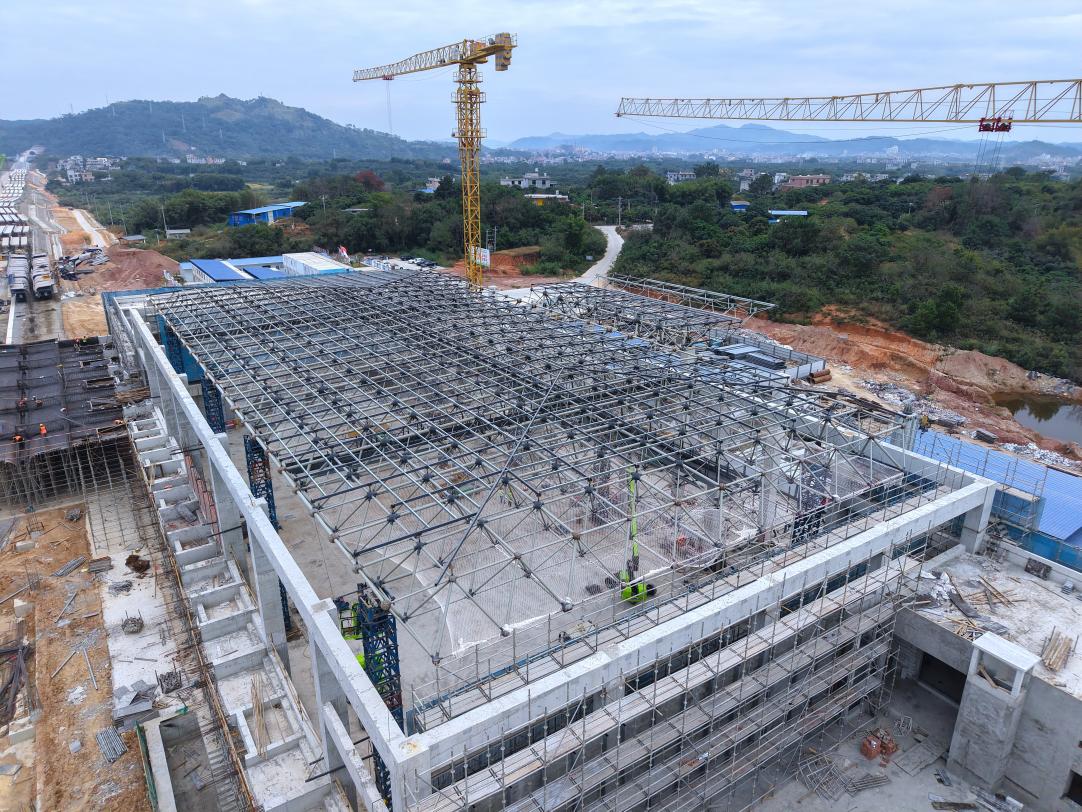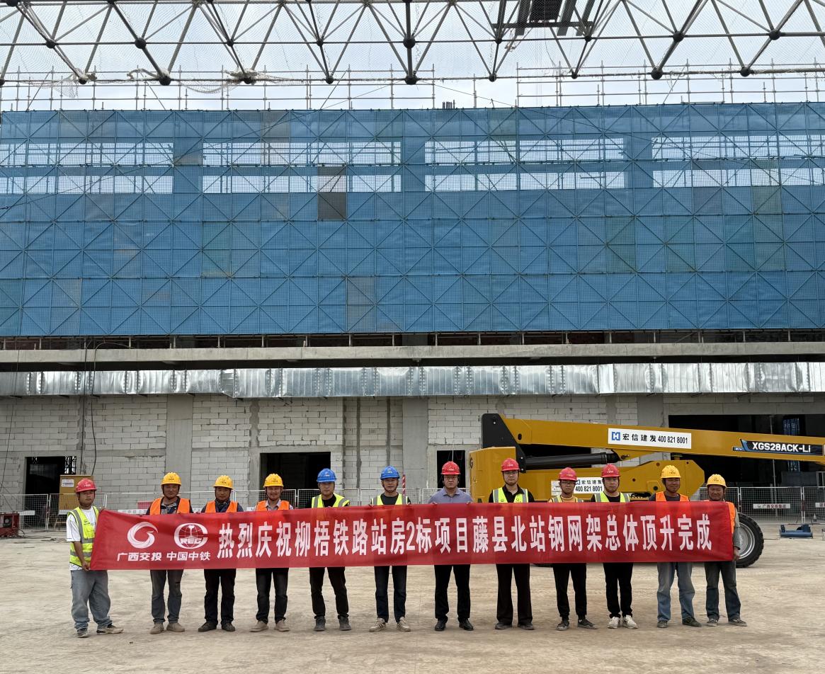 “钢网架的顺利顶升,是项目团队攻克技术难关、高效协同作战的成果。”工区负责人表示,此前团队已成功克服钻孔桩地下岩层过厚、深基坑支护等难题,推动藤县北站主体结构提前封顶。此次节点目标的达成,进一步加速了站房建设进程。