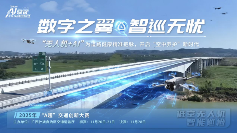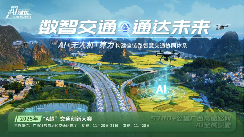 2025年“AI赋能千行百业超级联赛”交通行业创新大赛(简称“A超”交通创新大赛)即将在广西拉开帷幕。大赛不仅是广西向世界展示“交通+AI”实践成果的窗口,更是以开放姿态邀请全球智慧共同书写面向东盟、辐射全球的智能交通新篇章的生动实践。