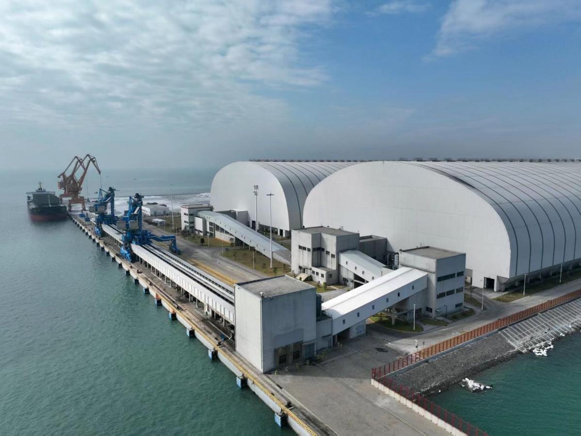 其中,2个10万吨级码头可以接卸来自全球的煤炭。运煤船抵达码头后,螺旋卸船机会自动卸载煤炭,并自动传输到无人值守配煤堆场。堆场里的煤,由自动传输带和运煤廊桥输送到锅炉燃烧发电,实现“智能洁净、用煤不见煤”。