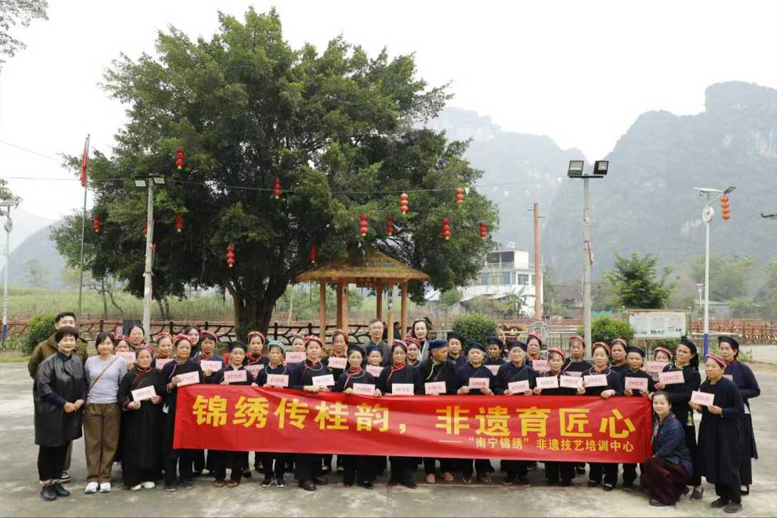 非遗工坊暖民心,织娘欢喜迎新年。2025年12月30日,2025年龙州县非遗扶贫就业工坊金龙壮族织锦技艺研培班收益发布会在广西龙州县金龙镇双蒙村板池屯举行,近40名“居家就业”的绣娘共领到了13万元收益金,屯里洋溢着丰收的景象,现场还吸引了不少网红主播在现场进行带货直播。