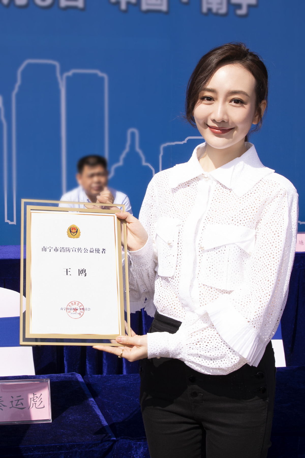 演员王鸥正式出任南宁市消防宣传公益使者(摄影:江杰)