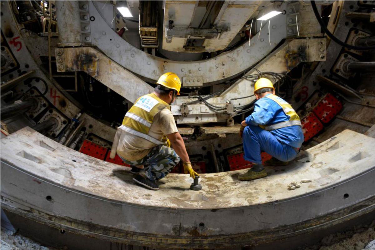 工作人员在进行管片拼装。(陈世一 供图)