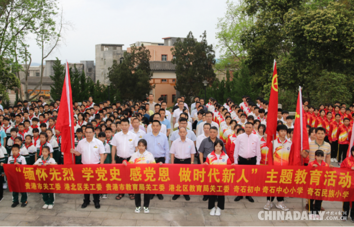全市各老干部工作部门组织1250多名老党员打卡谭寿林故居、罗村会议旧址、中秋起义纪念馆、中共贵港党史馆、黄日葵纪念馆等红色教育基地;组织陈岸、廖联原等革命先辈的后代回到红色教育基地讲党课、作报告12场;组织3.2万名中小学师生到革命烈士纪念碑缅怀英烈;联合中国校园健康行动关心下一代爱心团举办“庆建党百年 中关爱心行”活动,为中小学捐赠学生运动服、电脑一体机、图书、教具等约价值228万元的物品,向贫困生发放2.5万元关爱金;举办贵港市2021年“红色五月 红心向党”青少年诗歌朗诵大赛,472名中小学生选手展现了新时代青少年热爱党、热爱祖国、奋发进取的良好精神面貌。贵港市委老干部局充分用好用活“家门口”丰富的红色资源,讲好红色故事,激活红色地标,传承红色基因,唤醒初心,不断推动党史学习教育入脑入心、走深走实。