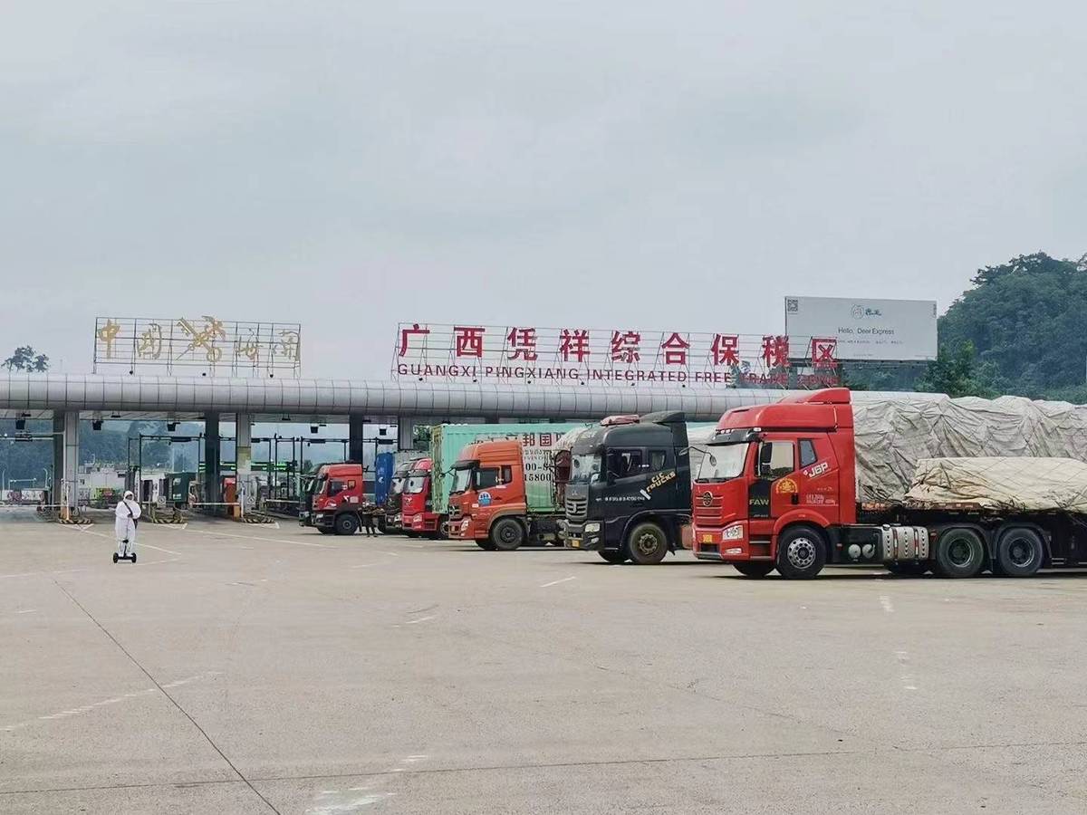 在广西友谊关口岸,一辆辆满载货物的跨境车辆正在有序排队等待通关,一件件新鲜的东盟优质水果进入国内百姓餐桌,而深受东盟国家欢迎的物美价廉的中国产品也通过跨境电商的渠道进入到外国消费者手中。整个国庆假期,友谊关口岸通关繁忙有序,跨境物流红红火火。