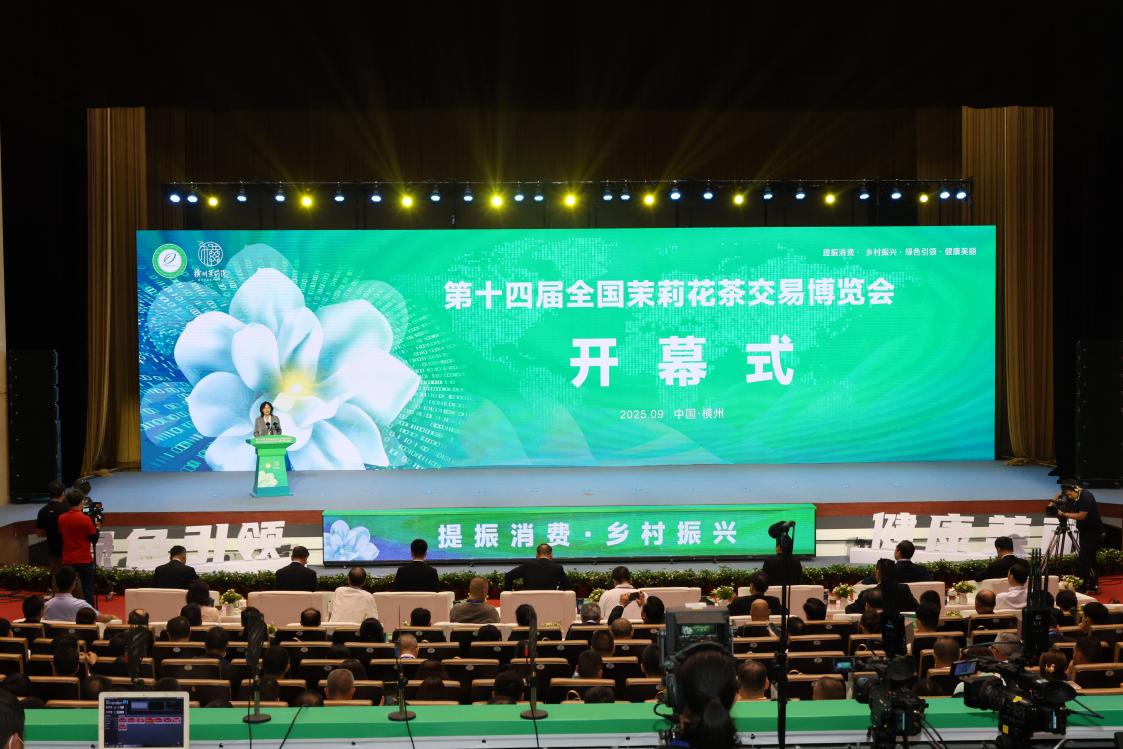 中国茶叶流通协会授予横州市“2025茉莉花新茶饮供应链核心县域”称号。(中国日报社广西记者站 石睿鹏 摄影/陈国海)