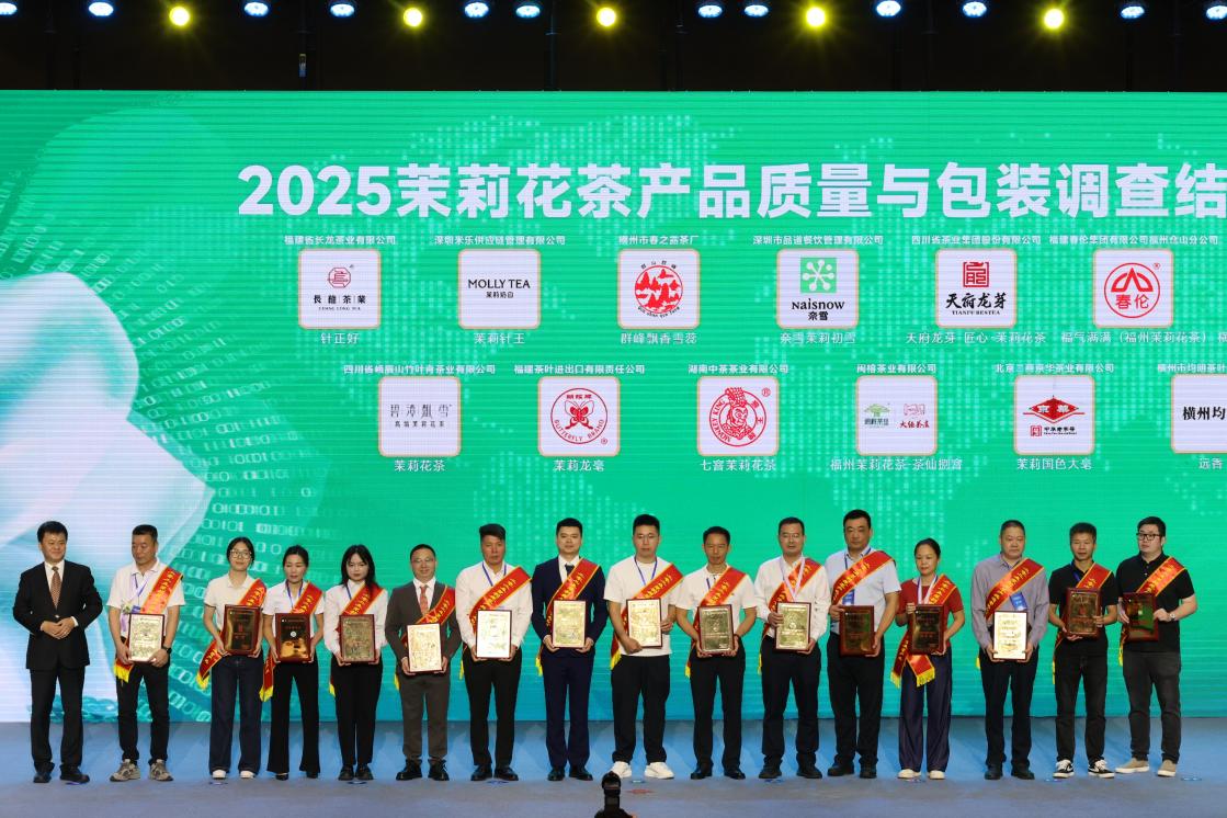开幕式公布了2025茉莉花茶产品与包装调查结果,为获评五星产品企业颁发证书。