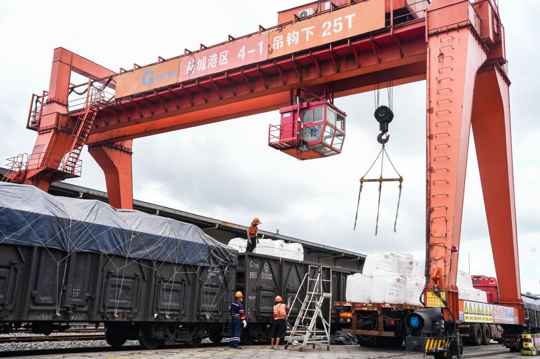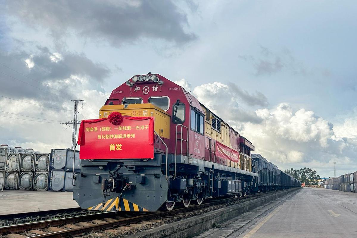 10月15日下午,广西首趟自越南同奈港至新疆的氧化铝铁海联运专列从防城港站首发,开辟了东南亚经北部湾港至新疆能源产业基地间的物流快车道,为推动国内国际双循环、降低企业物流成本提供有力的运输保障。