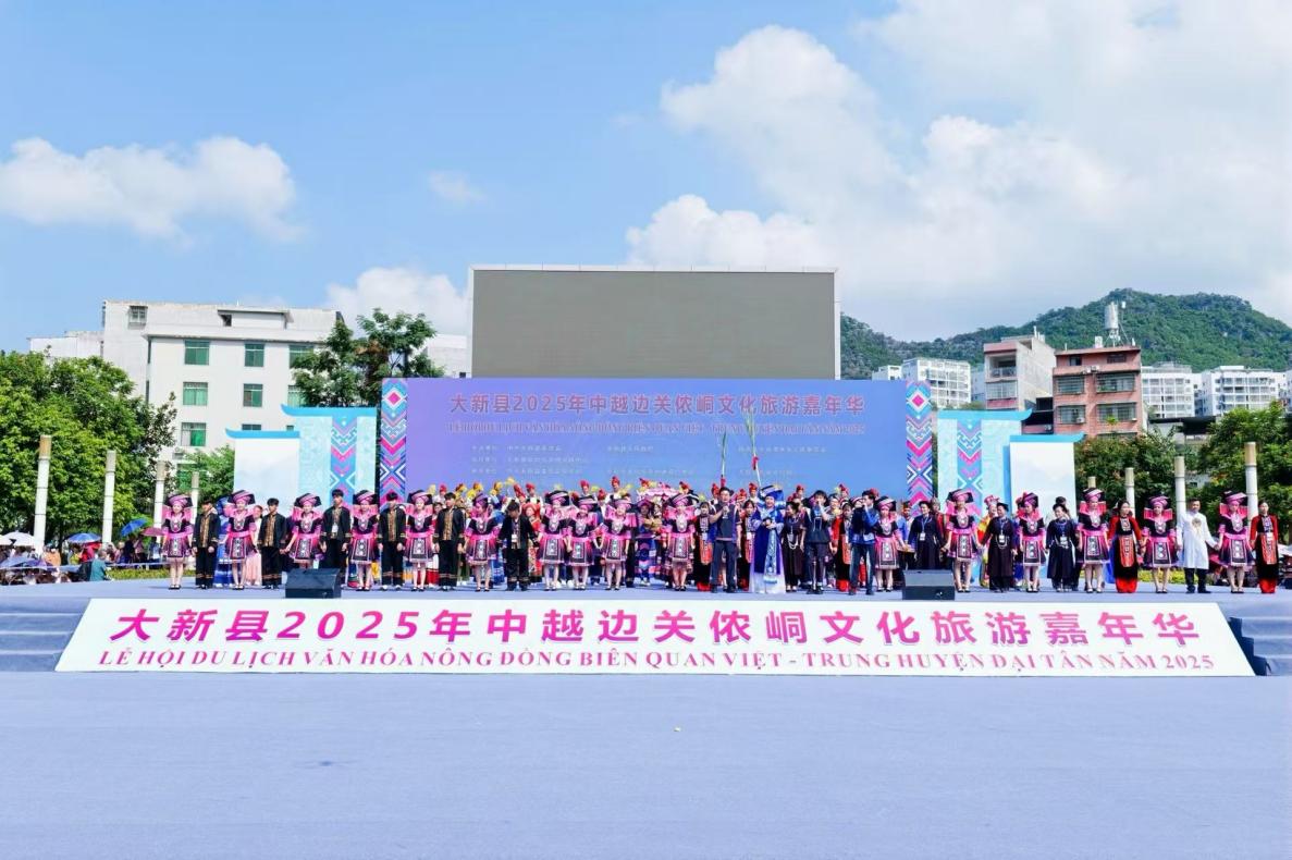 为进一步挖掘、保护和传承侬峒文化,深化中越两国传统友谊,促进双方在文化旅游领域深度交流合作,为中越建交75周年营造良好氛围,广西大新县于10月14日—19日举办2025年中越边关侬峒文化旅游嘉年华活动。其中,开幕式于10月17日在县城德天广场举行,崇左市副市长粟家艺宣布本次嘉年华活动开幕,大新县委书记施展致辞。