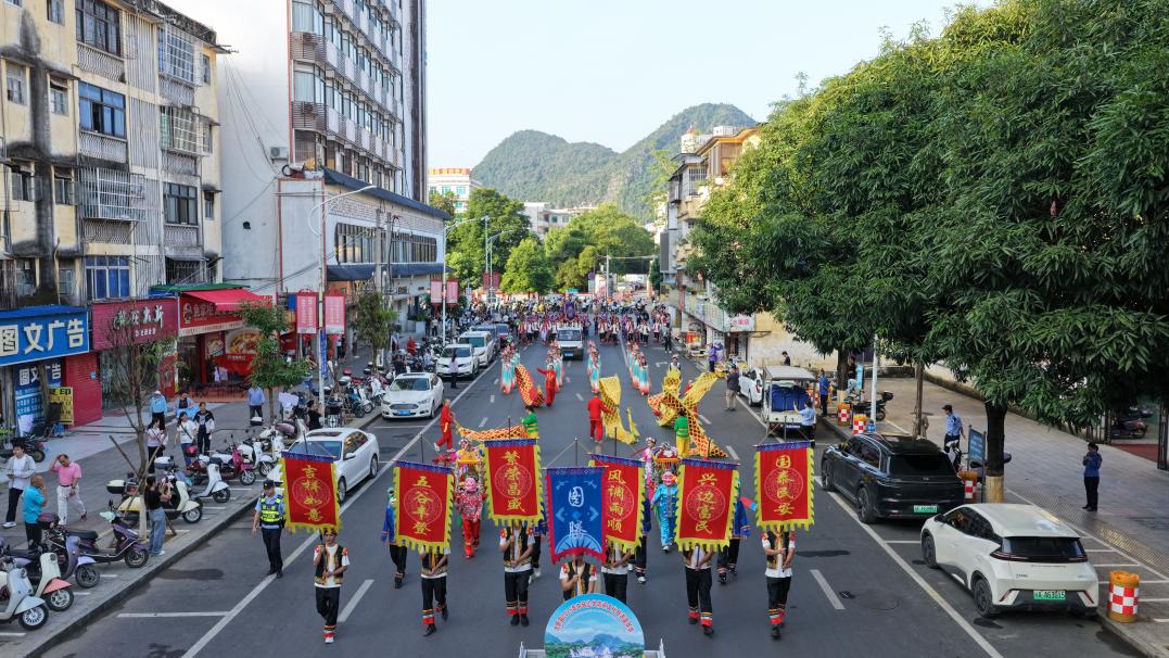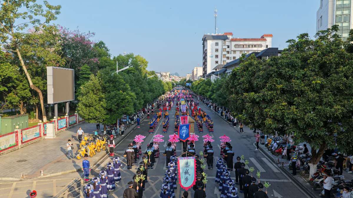 开幕式当天举办民俗巡游,23个特色方阵围绕文化符号、地域风貌、社会群体等主题,共同营造侬峒文化多元交融的鲜活场景,全方位展现大新县文化底蕴与生活气息,让观众沉浸式感受当地人文魅力。
