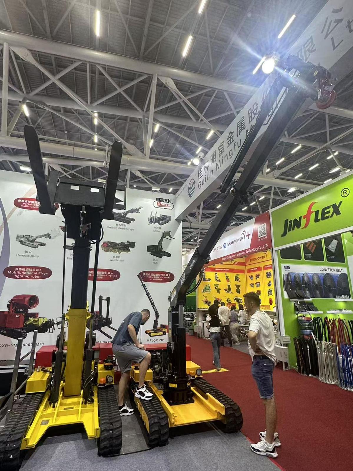 桂林明富金属股份有限公司携便携式伸缩臂多功能机器人、便携式折臂吊机器人等产品参展,凭借创新设计吸引巴西等目标市场的客商重点关注,目前已达成约10个意向订单。