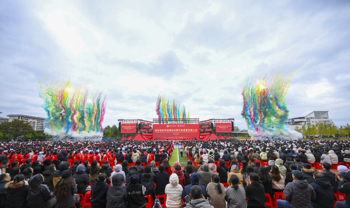 11月18日,桂林旅游学院建校40周年高质量发展大会在该校雁山校区举行。校庆期间,桂林旅游学院举办了系列学术讲座及教师学术成果展示活动,举行了书法、绘画、摄影等艺术作品展,建校40周年主题文艺晚会等文化活动。