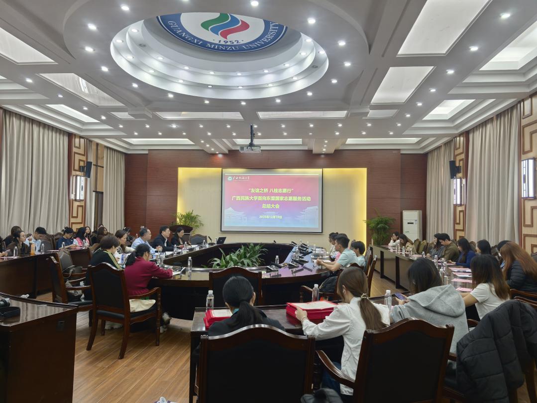 12月19日,广西民族大学举办“友谊之桥 八桂志愿行”2025年面向东盟国家志愿服务活动总结大会。活动聚焦东盟青年志愿服务与跨国文化交流,来自东盟6国的留学生志愿者分享了他们在本国社区、学校、慈善机构开展志愿服务和文化交流的实践成果,展现了中国与东盟国家深化人文交流的生动图景。