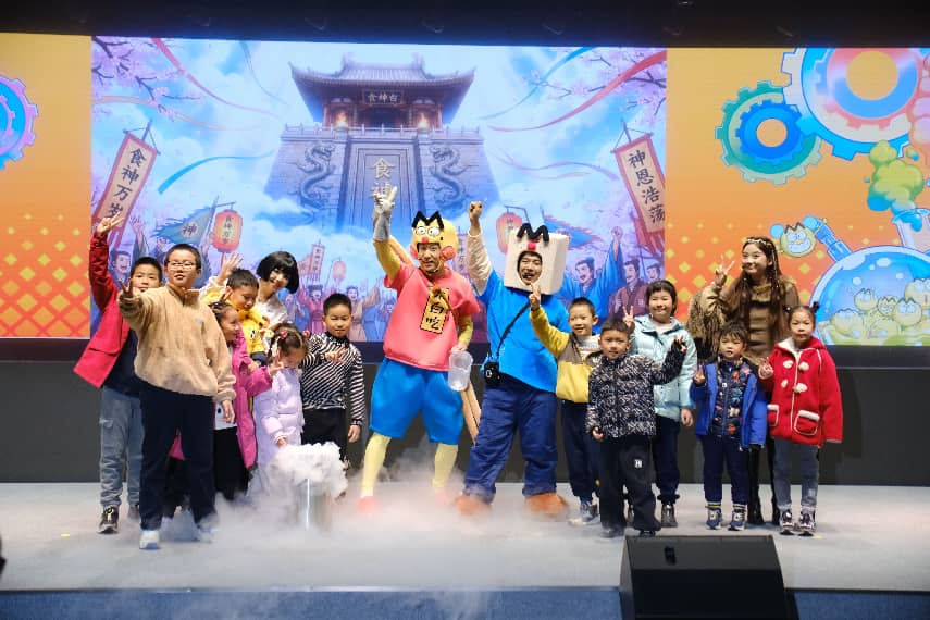 舞台表演中,“不白吃”与全场观众玩起了国宝大冒险科学实验秀,带领观众穿越回古代,开启“液氮大作战”。当孩子们好奇地看着新鲜蔬菜秒变脆片时,“不白吃”通过生动有趣的现场演绎,动漫视频的知识解读,速冻的科学原理在变得通俗易懂。为了进一步加深孩子们对这一知识点的理解,孩子们还上台亲手制作速冻小零食,沉浸式感受科学的奇妙,一个个深奥的科学原理在欢笑声和惊叹声中变得鲜活易懂。